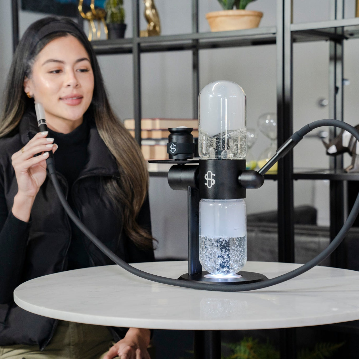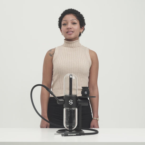 El Black Edition es la versión más elegante y atemporal de Stündenglass. Su acabado en negro mate le otorga un aire de poder y sofisticación que resalta en cualquier espacio. Con su rotación de 360° impulsada por agua y gravedad, este infusor ofrece caladas intensamente suaves y constantes, transformando cada sesión en una experiencia casi ceremonial.