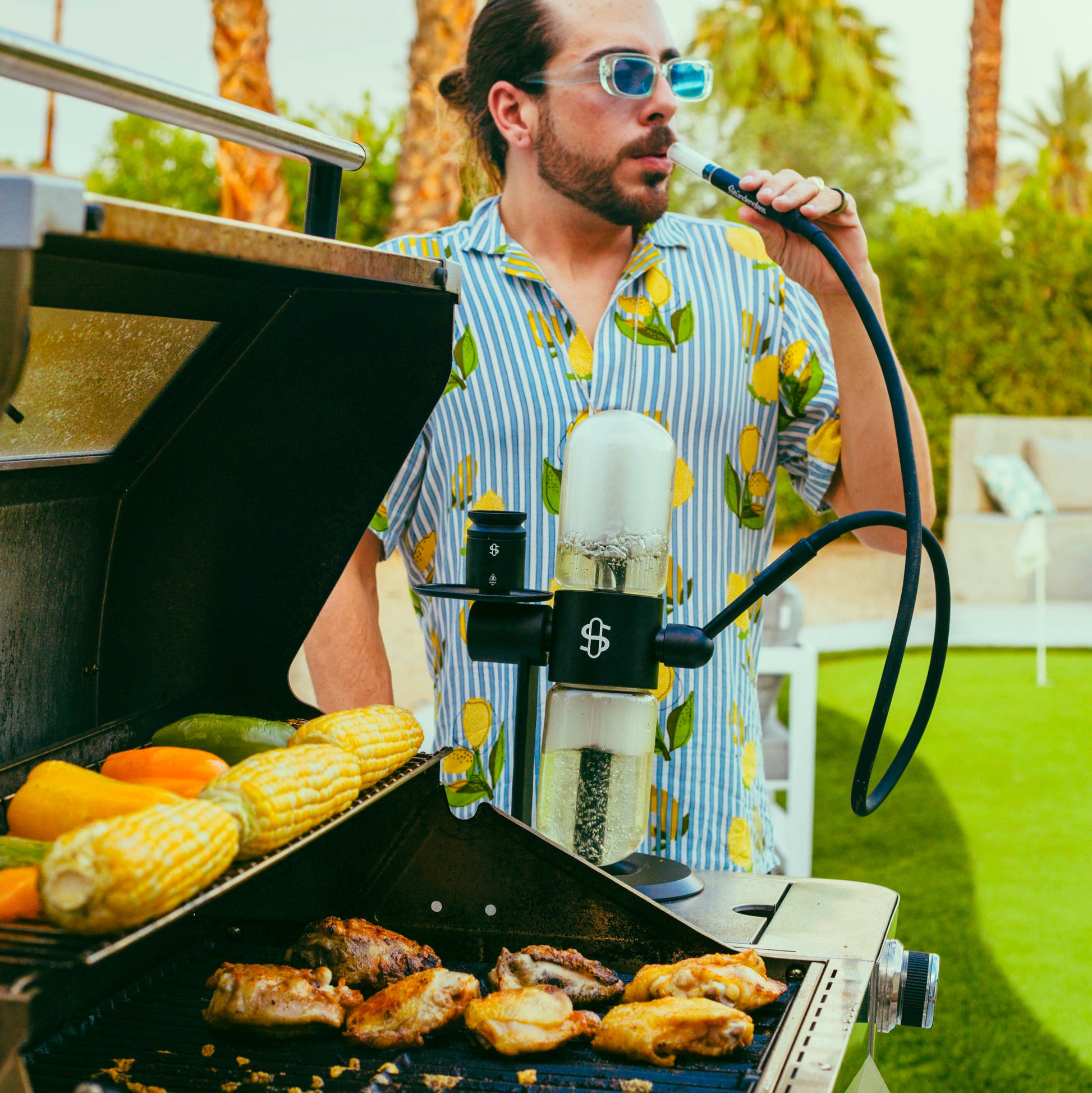 Este set se entrega completo y listo para usarse: bandeja de aluminio estilo hookah, liner de vidrio, manguera de silicón de 90 cm, boquilla ajustable de 45°, adaptador de 14 mm, kit de limpieza y caja reutilizable con asa. Cada elemento está pensado para unir funcionalidad, comodidad y estilo.